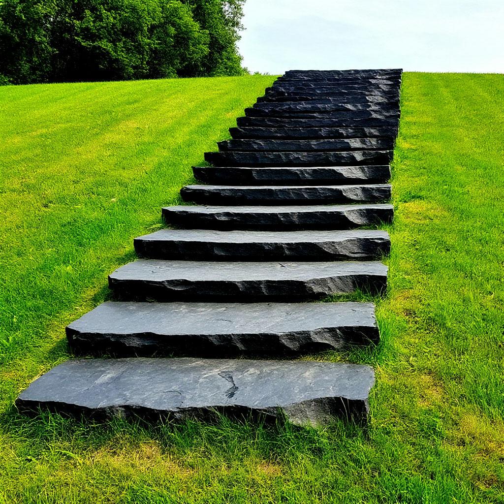 Предельная износостойкость: Ступени из шунгита не истираются, не теряют своей формы и не крошатся со временем. Они легко выдерживают вес человека, мебели и даже садовой техники.